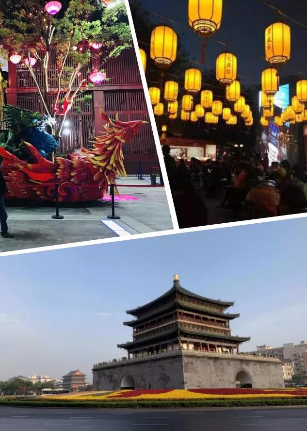 夜晚降临,我们一行来到西安另一标志性建筑-鼓楼。它横跨大街,和钟楼遥相呼应。晨钟暮鼓,雄浑庄严。登临楼上,凭栏便能眺望全城景色。